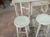 Μπαράκι τροχήλατο με σκαμπό. Παραλήφθηκε σε κομμάτια, μετατράπηκε σε πατινα σε εκρού αποχρώσεις αλλάχθηκαν τα ροδάκια, περάστηκε με ειδικό υγρό για το σαράκι, φτιάχτηκε καινούργιο συρτάρι.