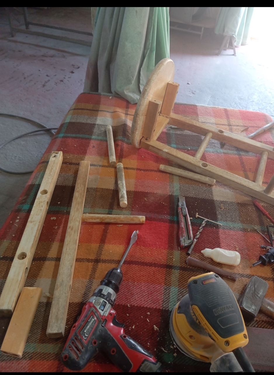 Μπαράκι τροχήλατο με σκαμπό. Παραλήφθηκε σε κομμάτια, μετατράπηκε σε πατινα σε εκρού αποχρώσεις αλλάχθηκαν τα ροδάκια, περάστηκε με ειδικό υγρό για το σαράκι, φτιάχτηκε καινούργιο συρτάρι.